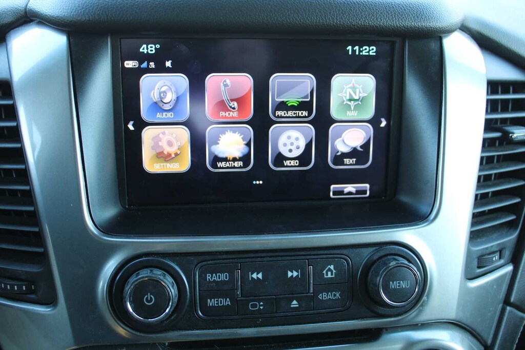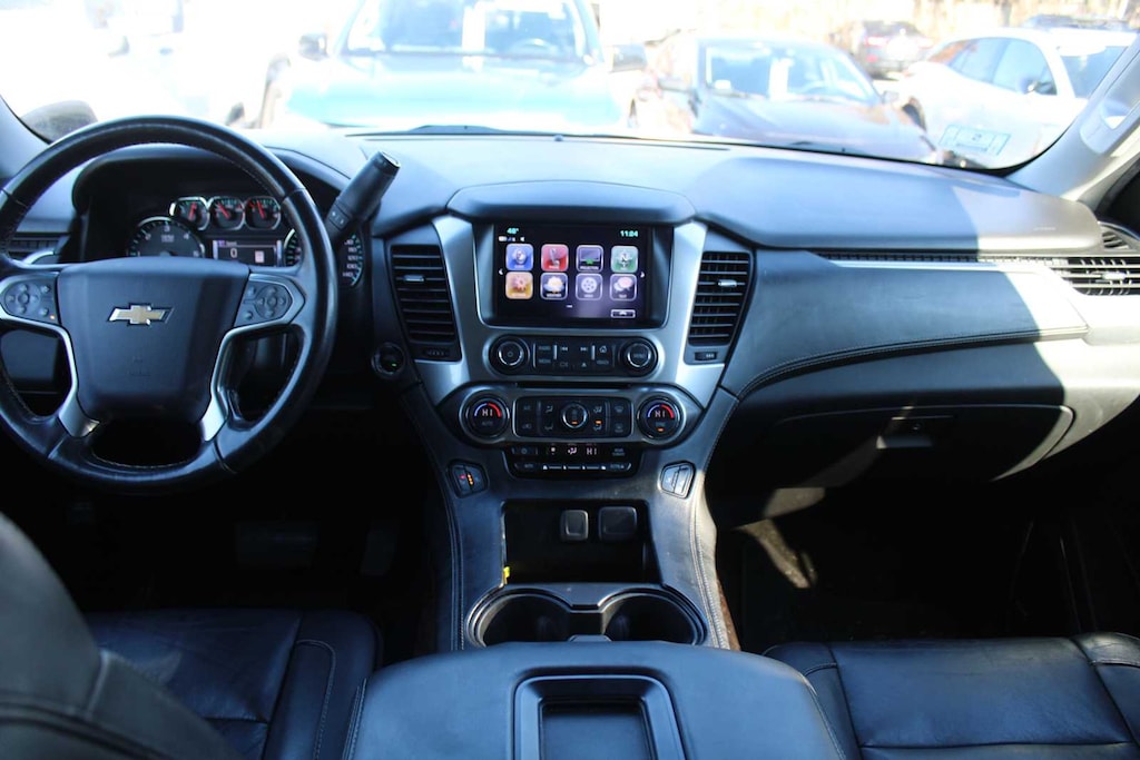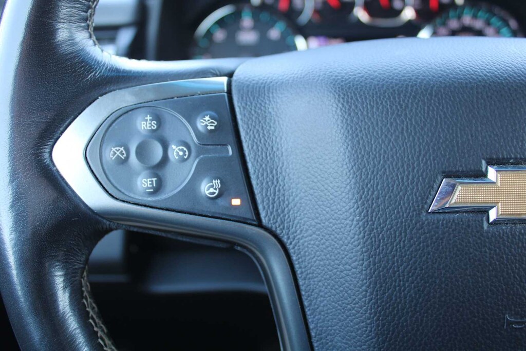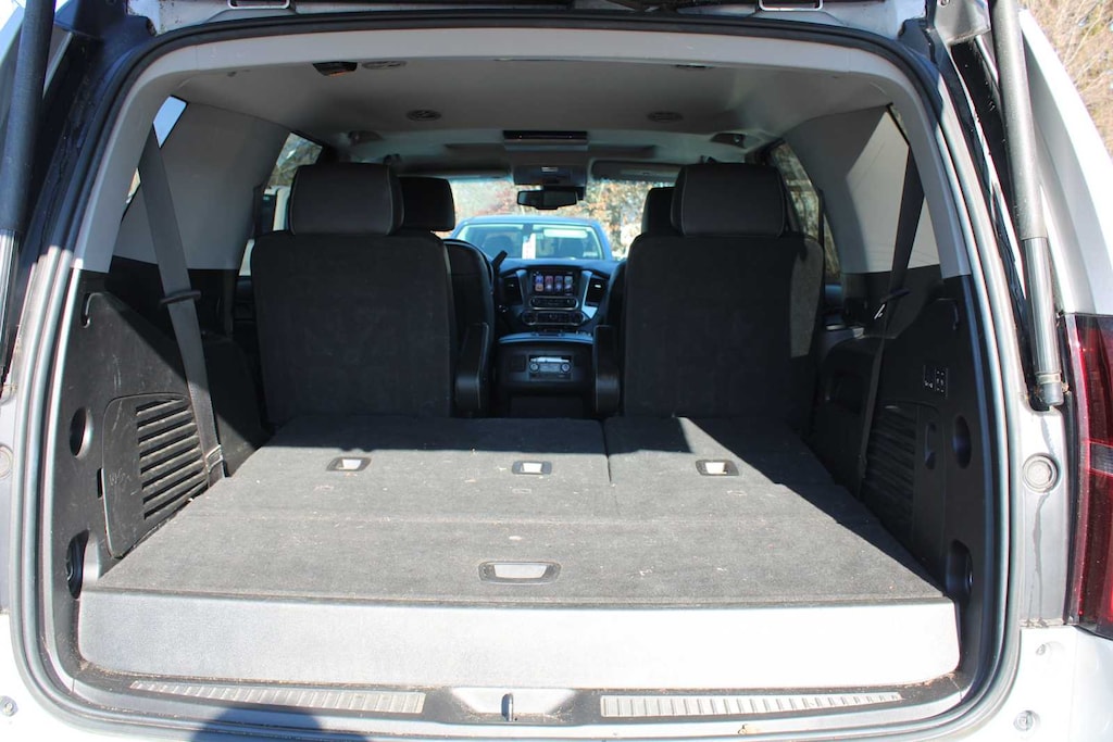SUN, ENTERTAINMENT AND DESTINATIONS PACKAGE, (CF5) power sunroof, (U42) rear seat DVD entertainment system and (IO6) Chevrolet MyLink radio with navigation, LUXURY PACKAGE includes additional 9 months of SiriusXM Radio, (AS8) power fold third row 60/40 split bench seats, (ATH) Passive Entry System, (ATT) second row power release 60/40 split folding bench seat, (BTM) keyless start, (DL3) outside heated power-adjustable, power-folding mirrors, (KA6) heated second row seats, (N38) memory power tilt and telescopic steering column, (TC2) Hands free liftgate, (T3U) fog lamps, (UD5) Front and Rear Park Assist, (UFG) Rear Cross-Traffic Alert, (UKC) Lane Change Alert with Side Blind Zone Alert and (UVD) heated steering wheel and color key rear fascia trailer hitch closeout, ENTERTAINMENT SYSTEM, REAR SEAT, BLU-RAY/DVD with remote control, overhead display, Wi-Fi wireless projection capability, two 2-channel wireless digital headphones, auxiliary HDMI/MHL audio/video input and 2 USB ports, SEATS, SECOND ROW BUCKET, POWER RELEASE, AUDIO SYSTEM, CHEVROLET MYLINK RADIO WITH NAVIGATION AND 8" DIAGONAL COLOR TOUCH-SCREEN AM/FM stereo with seek-and-scan and digital clock, includes Bluetooth® streaming audio for music and select phones; voice-activated technology for radio and phone; and Shop with the ability to browse, select and install apps to your vehicle. You can customize your content with audio, weather and more; featuring Apple CarPlay® and Android Auto® capability for compatible phone; 5 USB ports and 1 auxiliary jack, MIRRORS, OUTSIDE HEATED POWER-ADJUSTABLE, POWER-FOLDING AND DRIVER-SIDE AUTO-DIMMING with integrated turn signal indicators and ground illumination, ENGINE, 5.3L ECOTEC3 V8 WITH ACTIVE FUEL MANAGEMENT, DIRECT INJECTION AND VARIABLE VALVE TIMING includes aluminum block construction (355 hp [265 kW] @ 5600 rpm, 383 lb-ft of torque [518 N-m] @ 4100 rpm) (STD), TRANSMISSION, 6-SPEED AUTOMATIC, ELECTRONICALLY CONTROLLED with overdrive and tow/haul mode (STD), STEERING WHEEL, HEATED, LEATHER-WRAPPED AND COLOR-KEYED with theft-deterrent locking feature.