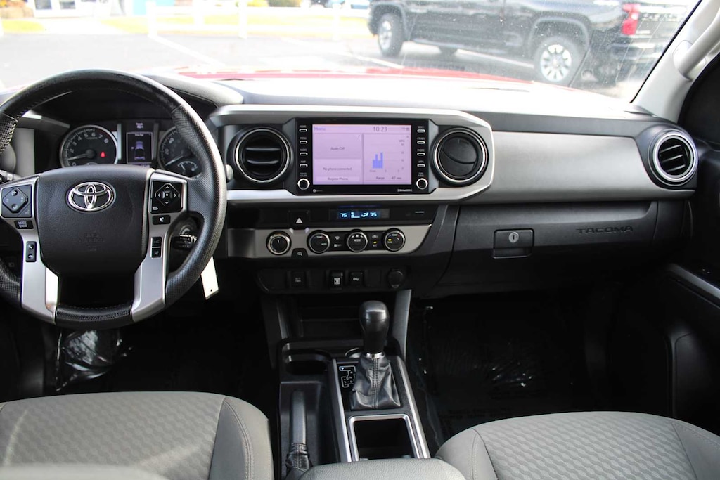 4x4, Back-Up Camera, Satellite Radio, iPod/MP3 Input, Onboard Communications System, Trailer Hitch, Aluminum Wheels, Dual Zone A/C, Smart Device Integration, WiFi Hotspot. MP3 Player, Privacy Glass, Keyless Entry, Steering Wheel Controls. Toyota SR5 with Barcelona Red Metallic exterior and Cement interior features a V6 Cylinder Engine with 278 HP at 6000 RPM*.