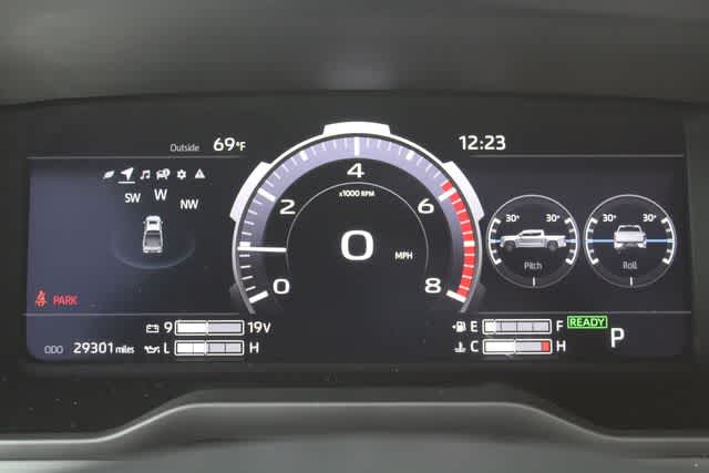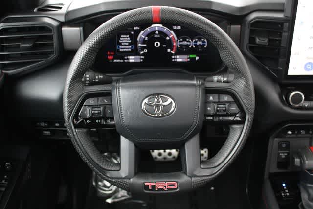Navigation, Sunroof, Panoramic Roof, 4x4, Heated Driver Seat, Cooled Driver Seat, Back-Up Camera, Turbocharged, Hybrid, Premium Sound System. MP3 Player, Keyless Entry, Privacy Glass, Steering Wheel Controls. Toyota TRD Pro Hybrid with Terra exterior and Black interior features a V6 Cylinder Engine with 437 HP at 5200 RPM*.